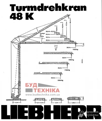 Продажа по запчастей на башенный кран Liebherr 48 K , нижнеповоротный, быстромонтируемый.