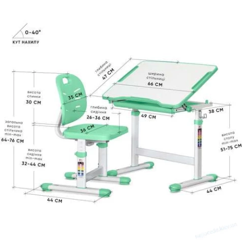Внимание: цена только за парту. Стул в комплект не входит! Его цена 1660 грн.