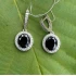 Нові срібні сережки з великим чорним та маленькими білими фіанітами