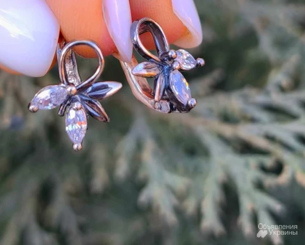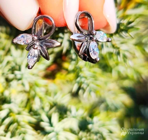 Нові срібні чорнені сережки з білими фіанітами (виробництво Україна).Чорнене срібло 925 проби, фіаніти, бірка, пломба.