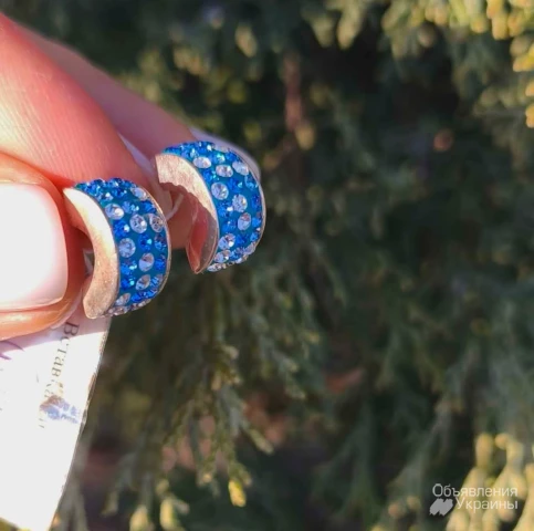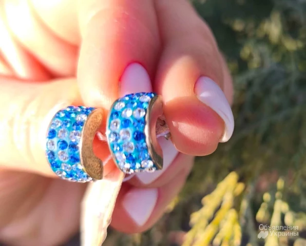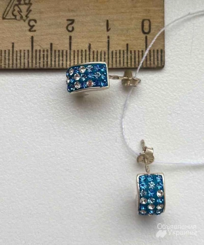 Нові срібні сережки-цвяшки з блакитними кристалами Сваровські (виробництво Україна).