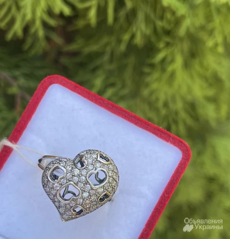 Нова срібна каблучка Серце з фіанітами (виробництво Україна).