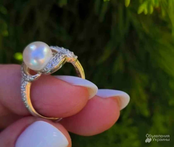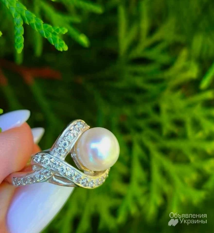 Нова срібна каблучка з перлиною та білими фіанітами (виробництво Україна).