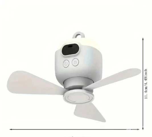 Портативний USB-перезаряджуваний акумуляторний вентилятор з LED-нічним світлом - міцний ABS, античне покриття, тривалий термін служби батареї. При зарядженій батареї світить, з працюючим вентилятором, до 8 годин.