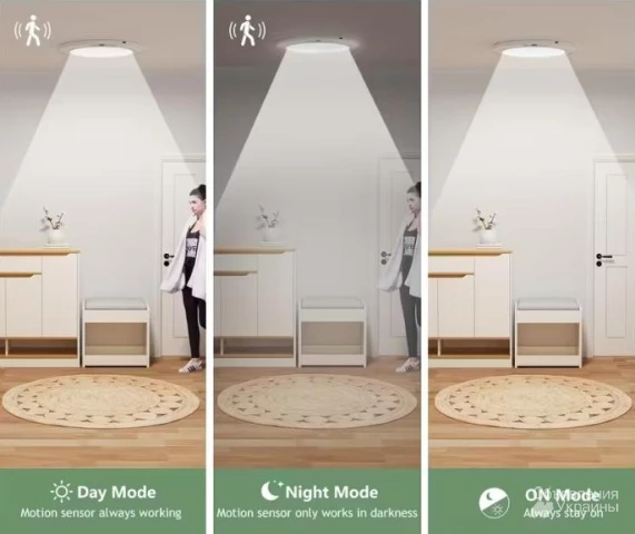 Світильник обладнаний інфрачервоним датчиком руху (PIR), який автоматично вмикає світло при появі людини та вимикає його за відсутністю руху.