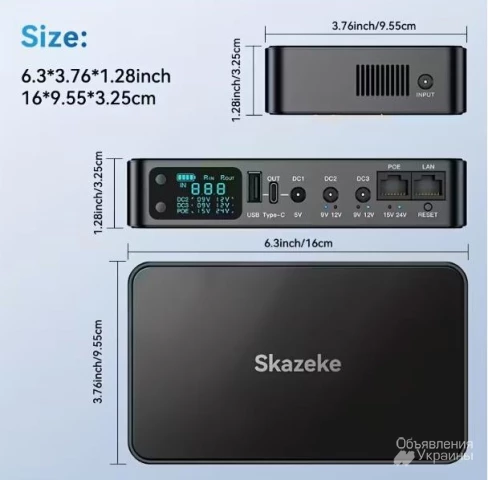 Skazeke Mini UPS, ДБЖ 18000 мА·год, з регульованою напругою 5В/9В/12В/15В/24В