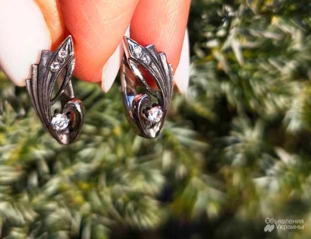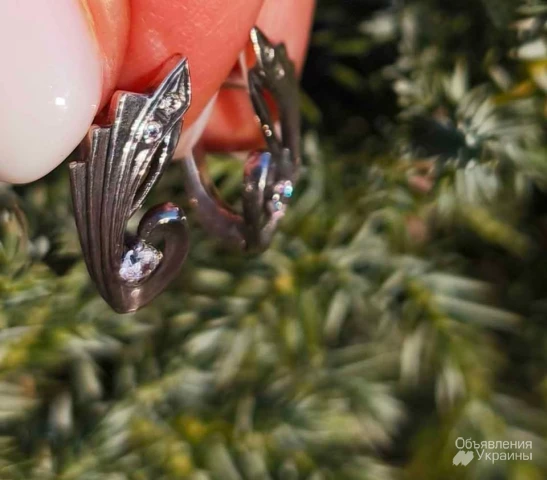 Нові срібні чорнені сережки з білими фіанітами оригінального дизайну (виробництво Україна).