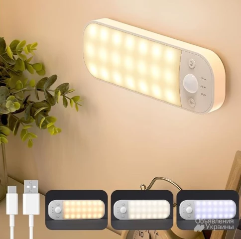 Світильники з датчиком руху, акумуляторні, бездротові, регульована яскравість, 3 режими світла, комплект 2 шт