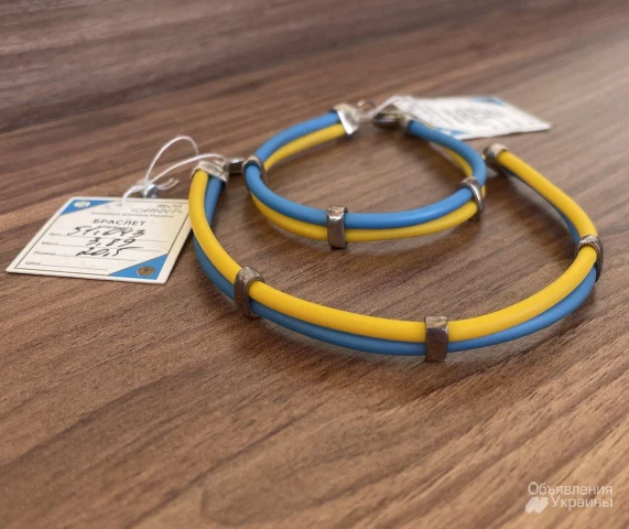 Жовто- блакитний браслет із срібними деталями.